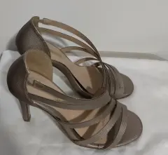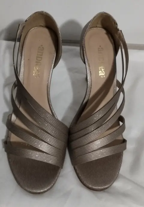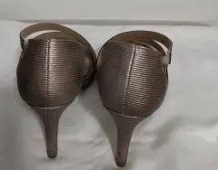 Zapatillas de tacón Andrea. Zapatillas color dorado, de tela, tacón 8, talla #4 MX muy elegantes