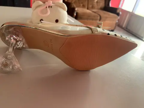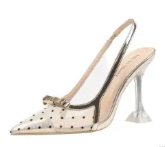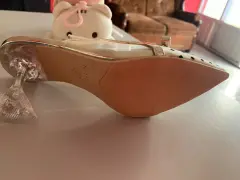 Zapatillas de tacón de cristal, color nude de lunares con transparencias, número 3, NUEVAS