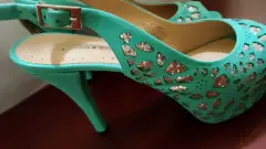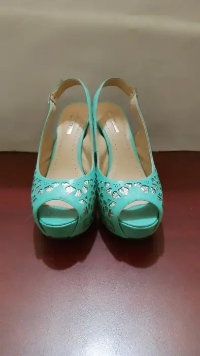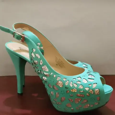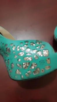 Zapatillas diamantadas. Buen estado #26 tacón 10 CM forro sintetico color jade diamanta