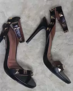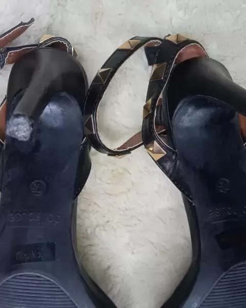 Zapatillas negras con estoperolesCorreas en los tobillosSin detalles (sólo se usaron una vez)Vienen fiel a su talla.