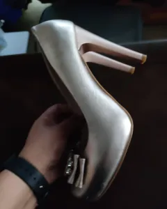 Zapatillas doradas. Zapatillas doradas, plataforma de 2 cm y tacón del 11