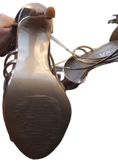 Zapatillas doradas con cintas cruzadasTacón del 10Nuevas, talla 3Tiene protector de suela