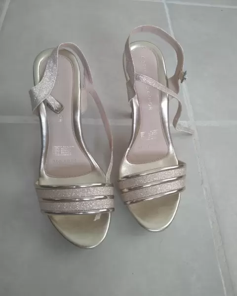 Zapatillas Dorothy Gaynor en color dorado, del numero 6. Tacón 9 cm, plataforma 1 y medio cms, sin detalles