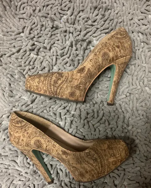 Zapatillas tipo corcho talla 4 marca dorothy gaynor altura 12 cm con plataforma adelante interna de 3 cm súper cómodas suela antiderrapante