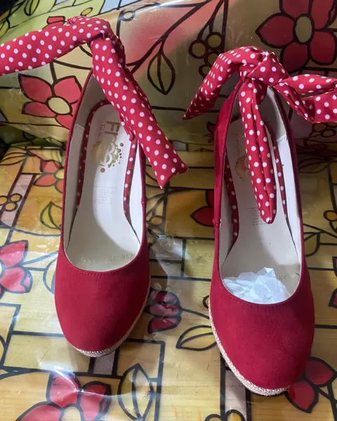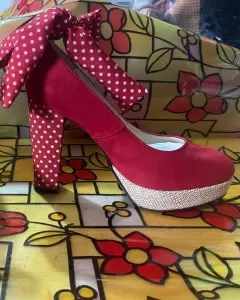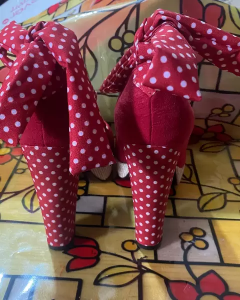 Lindas zapatillas rojas con moño y lunares en tacón, totalmente nuevas.Medida Tacón: 12cm.