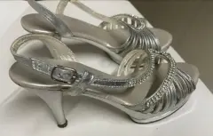 Zapatillas fiesta. Elegantes zapatillas plata con pedrería, cómodas por su plataforma, ideales para lucir en eventos!