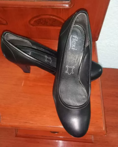 Hermoso par de zapatillas cerradas flexi de piel y suela sintetica tacon 7
