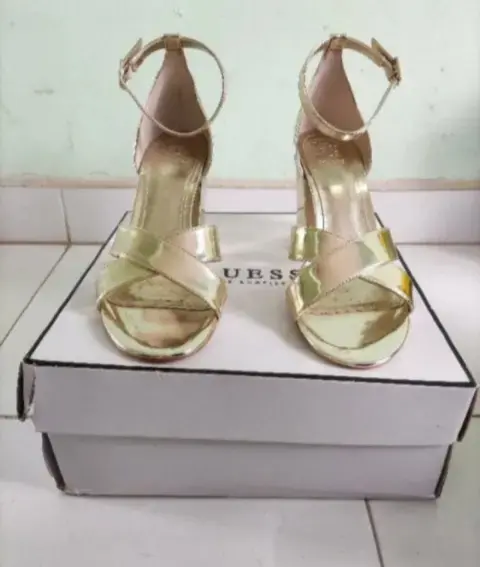 Zapatillas de tacon marca GuessZapatillas color oro, en excelentes condiciones, tacon cuadrado.Altura del tacon 9cm