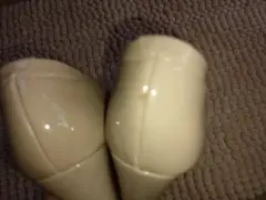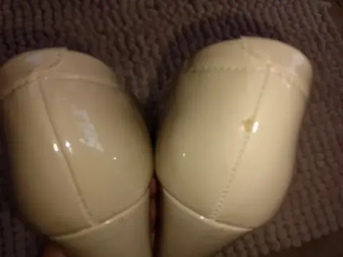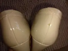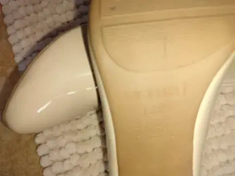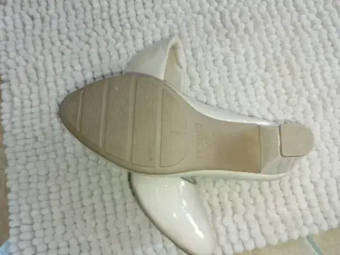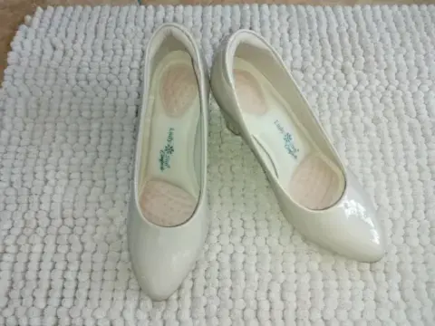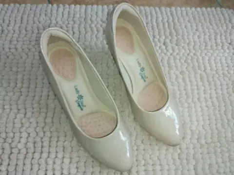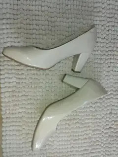 Hermosas zapatillas Lady Sun solo se usaron una vez tienen un raspón q no afecta su uso en la parte de atrás son de charol color nude son talla 23 muy cierto modas su tacón mide 6 cm son muy bonitas