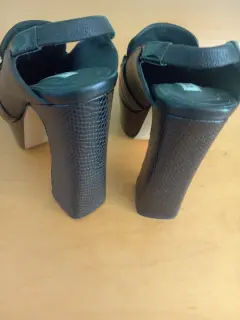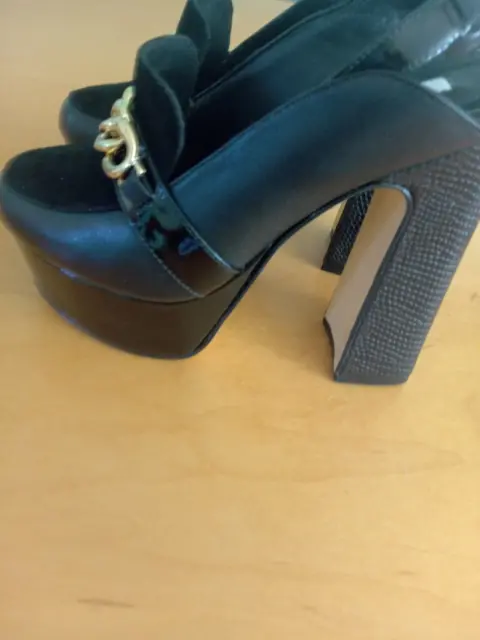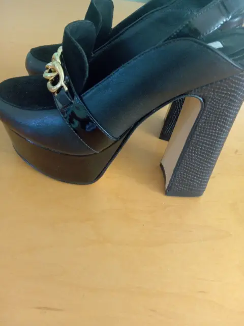 Hermosas zapatillas negro con gamuza , Num. 2 con decorado en cadena color dorado Num. De tacón 12 cm