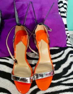 Bellísimas zapatillas Europeas número 38 tacón 11 cms mariposa verde con naranja y plateado.Me las regalaron pero las vendo por que me quedaron un poco grandes solo las usé unas dos horas.