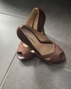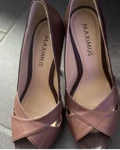 Zapatillas Maximus café. Zapatillas tipo boca de pescado, piel color café. Tacón 10cm. Sin estrenar.
