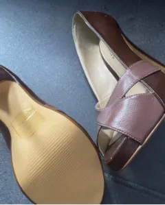 Zapatillas tipo boca de pescado, piel color café. Tacón 10cm. Sin estrenar.