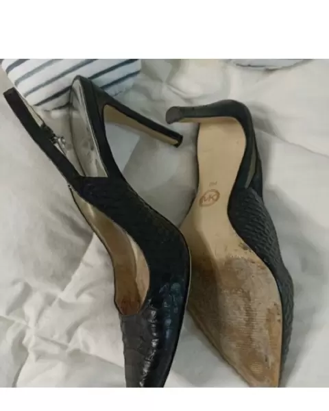 Zapatillas Michael Kors!!. Zapatillas en color negro y logos en dorado ,ajuste con elástico y hebilla, placa de la marca colgando , descubiertos del talón cerrados de enfrente y terminación en punta ,en buen estado ,T/8 ame T/5 mex