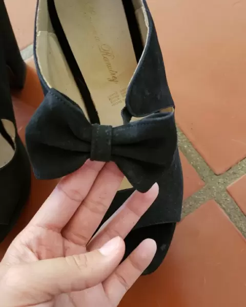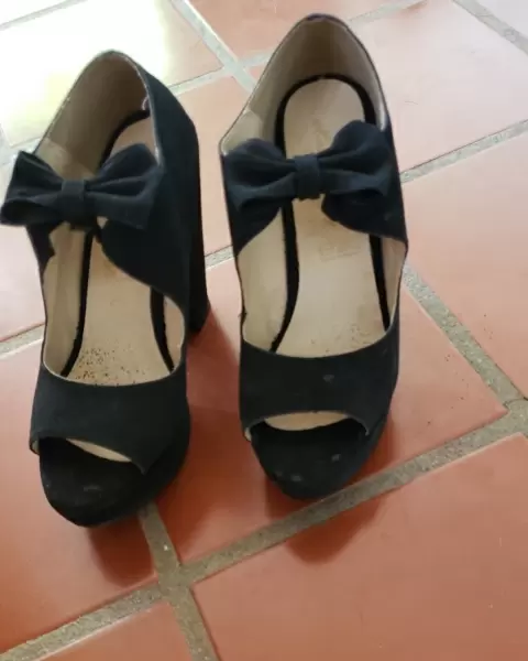 Zapatillas negras de gamusaYa se esta descarapelando un poco por dentroTacón: 11 cm