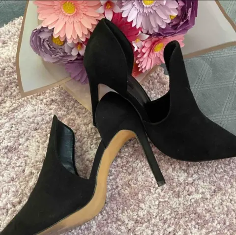 Zapatillas Capa de ozono, color negro, tipo gamuza#24Excelentes condicionesDos puestasTacón aprox 8cm