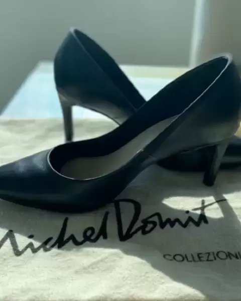 Preciosas zapatillas negras tacón medio marca Michel Domit, ideal para la oficina, cómodas y en excelente estado