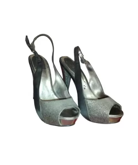 Zapatillas negras con plateado, correa, marca Andrea, con algunos detalles, talla 5.