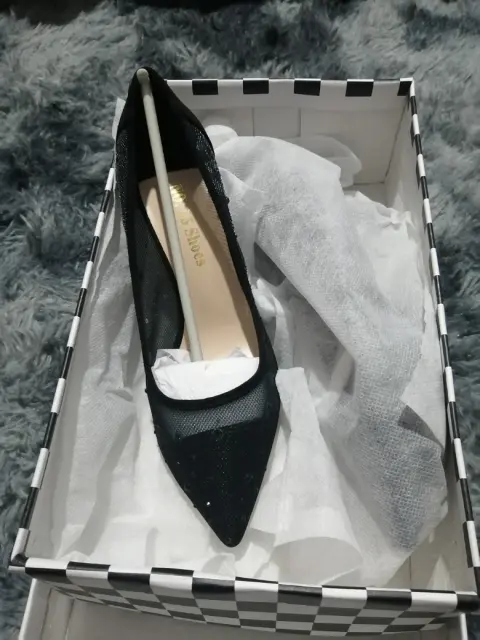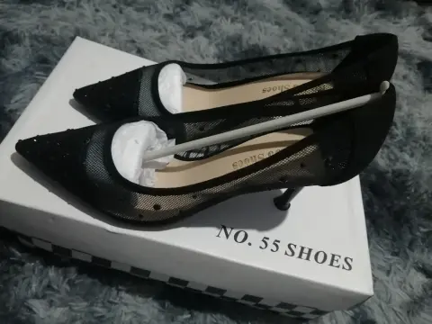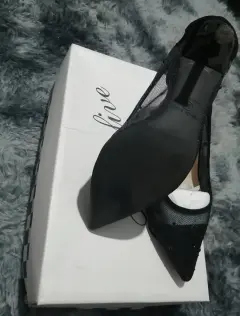 Zapatillas negras shein. Hermosa zapatillas de tela trasparente con destellos tipo lentejuela, en color negroTalla: 22 1/2Altura: 6.5 cm