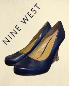 Zapatillas Nine West azul marino. Zapatillas azul marino con tacón puente, de corcho, puestos una vez, la plantilla es muy suave, súper cómodas. Tiene unos detalles en el tacón. Llévatelas con regalo sorpresa ❤️