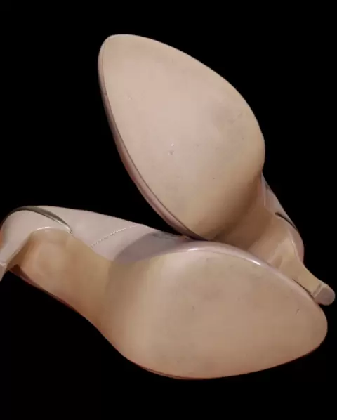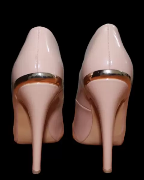Zapatillas color nude con detalle metálico en la parte trasera, tacón de delgado cero detalle de maltrato solo las use una vez, están muy bien cuidadas el tacón mide 12cm⭐️DISPONIBLE ⭐️