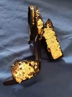 Zapatilla de lentejuelas dorada nuevas