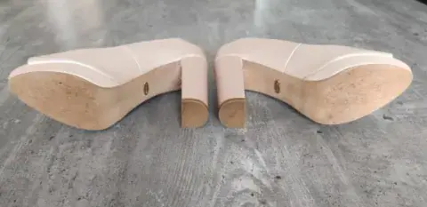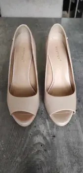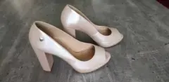 Zapatillas peep toe color rosa pálido, marca Westies, #25, tacón de 10 cm