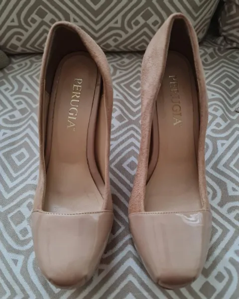 SEXYS ZAPATILLAS PERUGIA COLOR: BEIGE/TALLA: 4MX /HECHAS DE GAMUZA CON CHAROL!!/TACON:10CM/PLATAFORMA:3CM/ESTAN EN EXCELENTE ESTADO TODO EL MATERIAL DE LA ZAPATILLA,POCO USO!!TE FASCINARAN