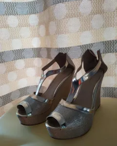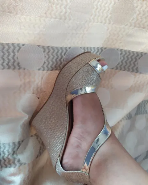 Zapatillas doradas de plataforma, talla 25 o 5 MxSolo se utilizaron en unas ocasiones.Marca sahara.