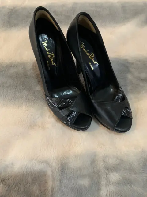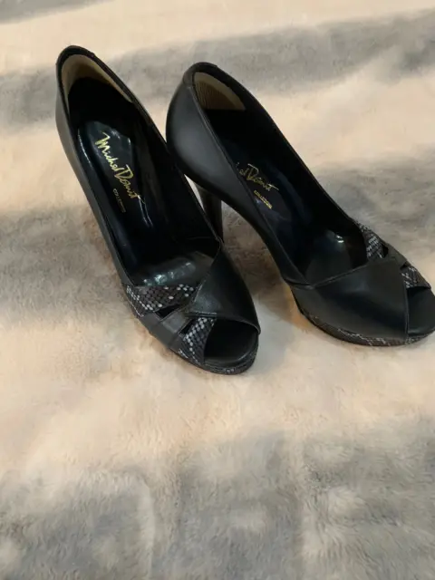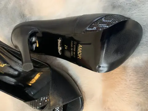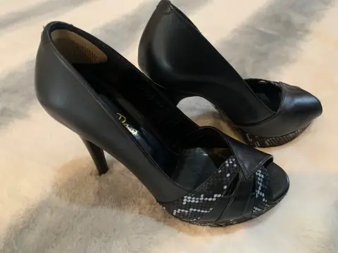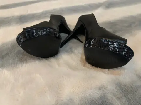 Zapatillas Plataformas negras. Hermosas zapatillas de plataforma, charol y piel, con acabado tipo víbora, muy elegantes y nuevas, en remate, Talla 4