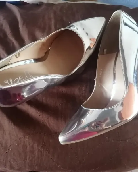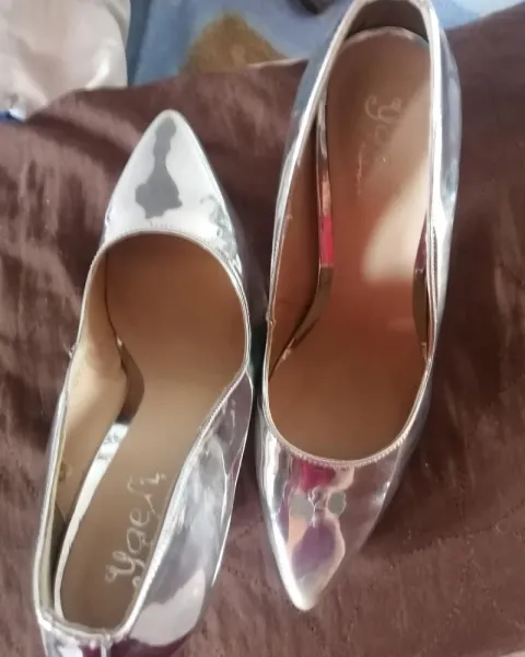 Zapatillas plateadas. Solo una puestaTacon de 12cmCómodosPicudos