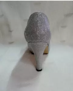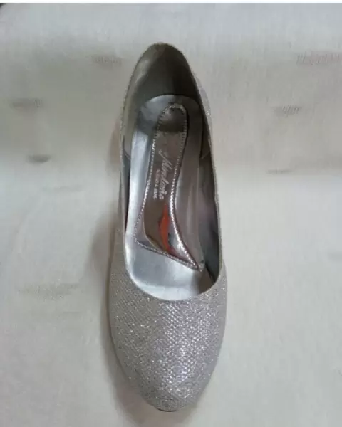 Zapatillas Plateadas. Es de la marca Josue Montaño, es hecho a mano, con diamantina, queda con cualquier prenda (vestido, pantalón de vestir o mezclilla) son del 4.5 , solo se usaron una vez