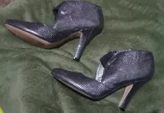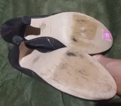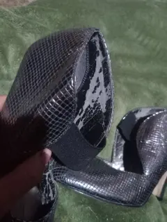 Bonita zapatillas plateada con resorte negro en medio, tacon de 10 cm desgaste por dentro como se muestra en las imágenes