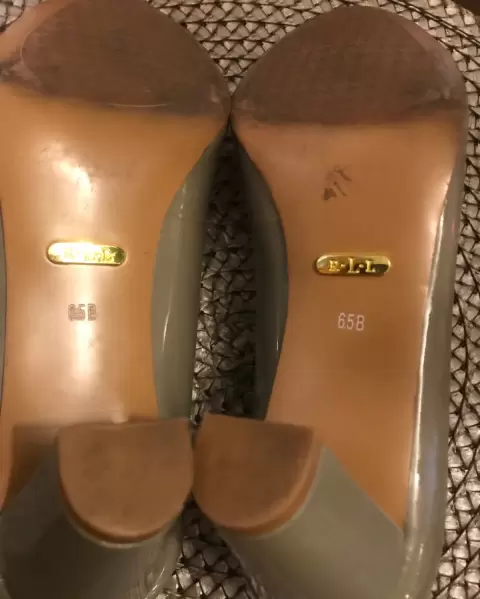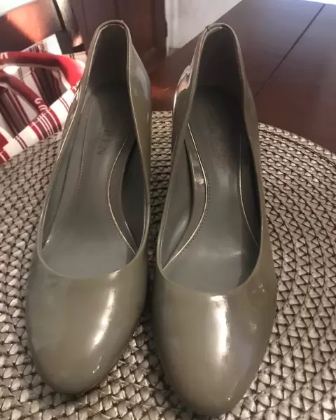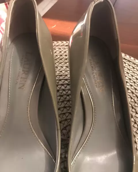Bonitas zapatillas de vestir en color gris obscuro marca Ralph Lauren ,en material de charol ,tienen un detalle de 2 pequeñitas marchitas que casi no se perciben mucho ,se ven en la ultima foto