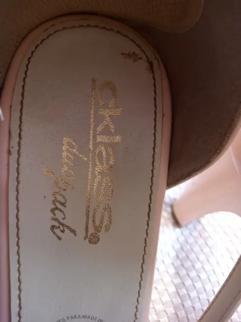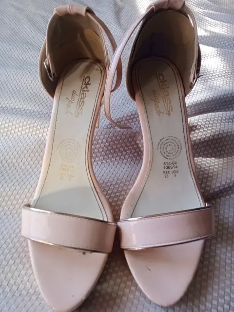 Zapatillas rosa tipo charol, número 5. Se ajusta al tobillo, 9 CM de alto