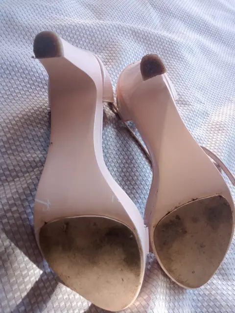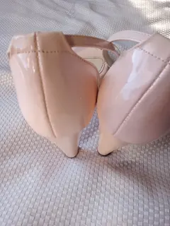 Zapatillas rosa. Zapatillas rosa tipo charol, número 5. Se ajusta al tobillo, 9 CM de alto