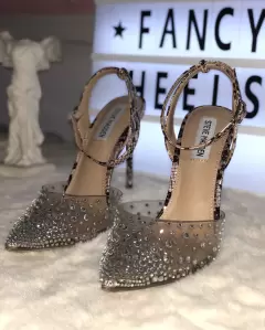 Zapatillas Steve Madden. Zapatillas Steve Madden, con detalles en pedrería imitación diamante y animal print víbora rosa. Talla 5Mx. Tacón tamaño 12cm.