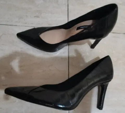 Lindos stiletosTalla #3 ( o 35 qué es el número que dice en la suela) En color negroTerminado de charol y textura tipo cocodrilo