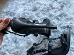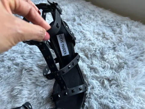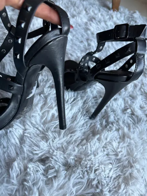 Bellísimas sandalias de tacón con tiras, están muy bonitos , los estoperoles le lucen genial . Visten muy sexi tus piecitos .