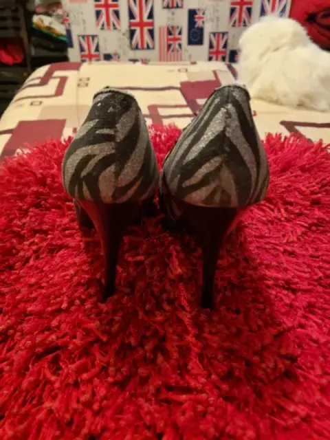 Zapatillas tacon dama con gliter. Diseño de cebra una plataforma tacon tipo aguja excelente estado el tacon diseño de cebra con gliter tiene detalles de uso que no afecta ni su usar ni su imagen estan en bue. Estado 50 porciento de vida 💛 4.5 número