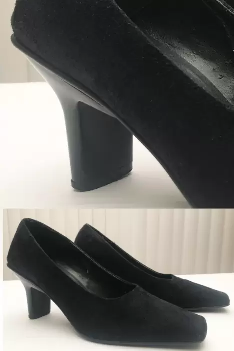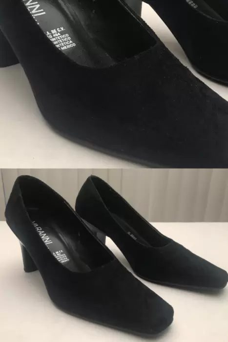 Zapatillas tipo ante negro. Zapatillas tipo ante color negro. Corte, forro y suela sintéticos. HECHO EN MÉXICO. Alto de tacón: 5 cms