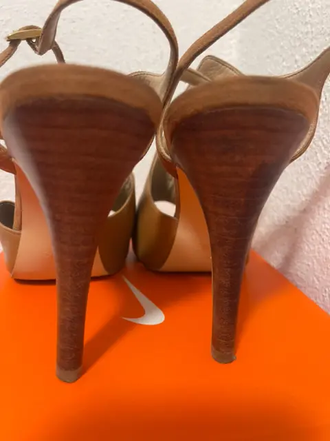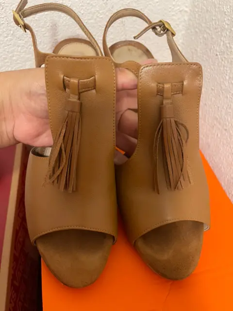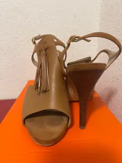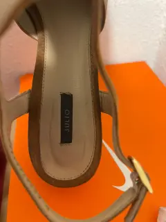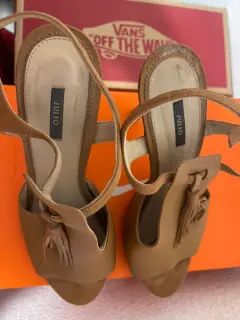 Zapatillas color Camel, Julio, talla 6, tipo botín, abiertas y en excelente estado.