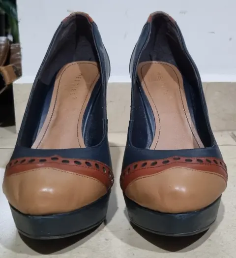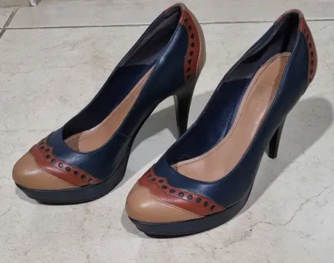 Elegantes zapatillas de tres colores marino, camel y chedrón,súper combinables, 100% piel, poco uso