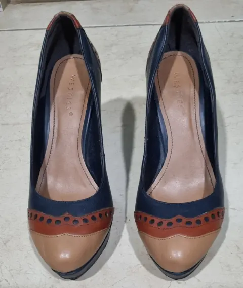 Zapatillas Tricolor 100% Piel Westies. Elegantes zapatillas de tres colores marino, camel y chedrón,súper combinables, 100% piel, poco uso