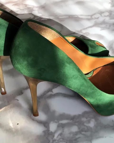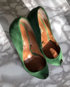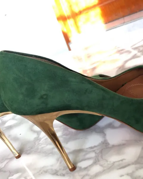 Zapatillas verdes musgo usadas solo un par de ocasiones, pequeña raspadura en tacón izquierdo en parte interior, son talla europea 39 que se traduce a talla 25/25.5 Mex