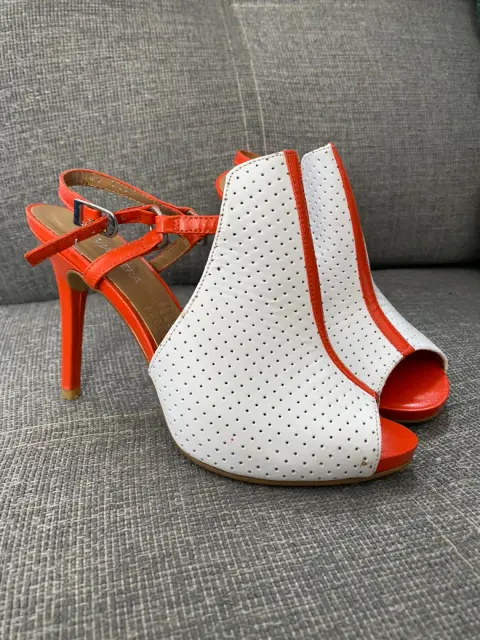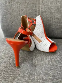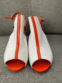 Zapatillas blancas con vivos en naranja, a estrenar sin etiqueta.Tacón 10 cmSúper cómodas.