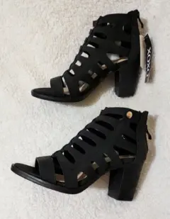 Hermosa zapatilla color Negra de material resistente al agua, diseño elegante perforado con cierre atrás, estilo tiras romanas, suela antiderrapante, altura tacón de 8cm. México Número #25.5cm. Pregúntame o visita mi closet para más modelos y numeración. En tu primer compra dentro de la app se te descuenta -$ usa mi código Promocional Copia y pega: lucyrmxXqQJ9