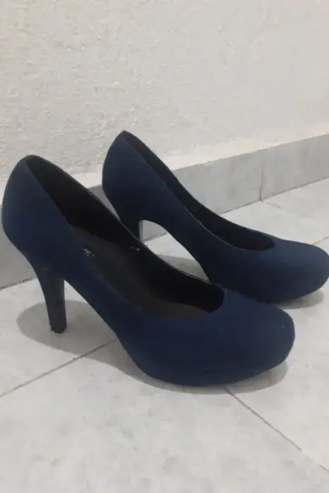 Zapatillas Yaeli nuevas de gamuza color azul marino. Talla 24. Tacón 8.5 cm