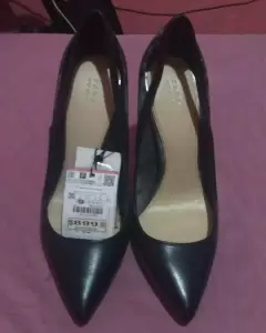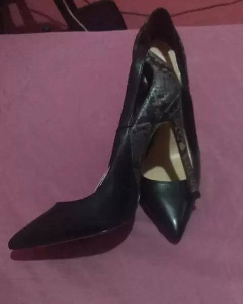 Zapatiilas pinta de abuja con respuesto color negro de piel y un tramo piel de serpiente en buen estado nuevas con etiqueta