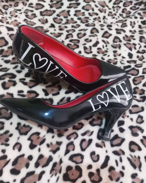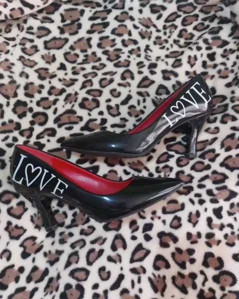 Zapatitos tacon bajo. Zapatillas LoVe tacon bajo de charol